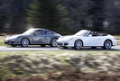 Nuova Porsche 911: Quattro nuovi modelli, due coupé e due cabriolet con la  classica trazione posteriore, che offriranno standard ancora più elevati in  termini di dinamica di guida grazie ai motori boxer a 6 cilindri completamente  nuovi e cilindrate rispettivamente di 3.6 e 3.8 litri. Inoltre, l’introduzione,  per la prima volta, dell’iniezione diretta (DFI) in una vettura sportiva  Porsche, associata al cambio a doppia frizione Porsche Doppelkupplung (PDK),  disponibile come optional, rende la 911 una vettura ancora più sportiva e  dinamica.   Estetica : La nuova generazione della 911 è riconoscibile per il design rielaborato  del frontale e della parte posteriore e per i nuovi fari con tecnologia LED,  sempre più di tendenza. Le luci diurne con tecnologia LED e i fari Bi-Xenon,  ora di serie su tutti i nuovi modelli della serie Carrera, conferiscono un look  ancora più dinamico al profilo della 911, interagendo con le nuove luci posteriori  con tecnologia LED per conferire uno stile inconfondibile e vigoroso anche alla  parte posteriore della vettura.    Tecnica : Per ciò che riguarda la trasmissione, il vecchio cambio automatico  Tiptronic è stato sostituito dal nuovissimo Doppelkupplung (PDK), composto da 7  marce e doppia frizione. La sua grande caratteristica è quella di fornire le  prestazioni di un manuale con il comfort di un automatico, grazie anche alla  possibilità di regolarne il funzionamento tramite i comandi posti sul volante  appositamente concepito. I tempi da 0 a 100 km/h confermano l’ottima  funzionalità del PDK: 4,7 e 4,5 secondi a seconda del motore. Inoltre per chi è  alla ricerca di prestazioni ancora maggiori Porsche mette a disposizione il  pacchetto Sport Crono  Plus, composto dal sistema Launch Control, che consente di  abbassare i tempi di accelerazione di altri 2 centesimi di secondo, e da una  strategia di cambio marcia che permette cambiate particolarmente rapide.Il sistema d’iniezione diretta della   benzina ”Direct Fuel Injection”, DFI, dopo la Cayenne e le nuove 911 a trazione   posteriore, debutta ora anche sulle Carrera 4 e 4S: grazie alla possibilità di   formare la miscela direttamente nella camera di combustione, questo motore (che   pesa 6 kg in meno del precedente) offre un grande rendimento abbinato a consumi   ed emissioni inferiori. A seconda del tipo di motorizzazione e carrozzeria   scelta le nuove Carrera 4, equipaggiate col 3,6 litri da 345 CV, registrano un   aumento di potenza fino al 8,5%, una riduzione del   consumo di carburante fino al 12,9% ed emissioni di CO2 ridotte del   15,4%. Tali miglioramenti hanno interessato in maniera di poco inferiore anche i   385 CV erogati dal 3,8 litri della 4S, che in versione Cabrio (+ 85 kg alla   bilancia rispetto alla Coupé) consuma ora 11,2 litri ogni 100 km. Per quel che   concerne le normative ambientali a Zuffenhausen hanno già messo le mani avanti   visto che le nuove 911 Carrera 4 e Carrera 4S presentano livelli di emissione   inferiori ai limiti stabiliti dalla futura Euro5 che entrerà in vigore a partire dal settembre   2009.Queste due tecnologie migliorano ulteriormente l'efficienza della 911:  la Carrera Coupé offre un’ottima economia nei consumi con 9.8 litri/100  chilometri mentre contemporaneamente crescono le prestazioni. Tutte le nuove  Carrera si assestano sotto la ragguardevole soglia di consumo di 11 litri/100  chilometri con emissioni di CO2 ridotte fino al 15%   Motori :  Motori boxer a 6 cilindri completamente nuovi e cilindrate  rispettivamente di 3.6 e 3.8 litri. La potenza massima della 911 Carrera con propulsore da 3.6 litri è stata  aumentata di 20 CV e raggiunge i 345 CV (254 kW). La potenza della 911 Carrera  S, con propulsore da 3.8 litri, è ugualmente impressionante: 30 CV in più per  raggiungere i 385 CV (283 kW). Questo ulteriore potenziamento consente alla  Carrera S Coupé di raggiungere, ora, una velocità massima superiore ai 300  km/h.    Interni : Dentro l’abitacolo la 911 offre un perfetto mix di sportività e lusso,  in combinazione con un sistema info-telematico all’avanguardia, il Porsche Communication Management,  un cervellone in grado di controllare tutti i sistemi tecnologici della  vettura. Un monitor da 6,5″ touchscreen offre comandi semplici e intuitivi per  effettuare qualsiasi regolazione, dal navigatore satellitare all’esecuzione  delle tracce audio memorizzate sul capiente hard-disk da 40 GB o dalle fonti esterne collegate  tramite l’interfaccia USB. La navigazione è affidata a un innovativo sistema  interamente comandabile tramite la voce. Completa la dotazione tecnologica un decoder televisivo per la  ricezione e la trasmissione dei segnali TV analogico e digitale.   Prezzi : I prezzi di listino per la gamma di Porsche Carrera 4 partono dai 91.260 euro della Coupè con cambio manuale, mentre per   la 4S sono necessari 102.300 euro, lo stesso prezzo richiesto per la Carrera 4   Cabriolet. Per la 911 Carrera 4S Cabriolet, sempre con cambio manuale, servono   invece 113.340 euro. La lunga lista di   accessori rende però praticamente impossibile resistere alla tentazione (o alla   necessità) di personalizzare la propria Carrera: se si pensa di aggiungere   alcuni optional irrinunciabili come ad esempio il PDK (3.540 euro), la vernice   metallizzata (912 euro), Bose Sound System (1.224 euro), interni in pelle (3.102   euro) oppure il modulo di navigazione per il PCM (1.944 euro) è facile intuire   come i prezzo finale della vostra 911 possa superare di almeno 10 mila euro il   prezzo di listino iniziale, se Tutti i modelli Carrera a   trazione integrale saranno disponibili presso i concessionari Porsche a partire   dal 25 ottobre 2008.